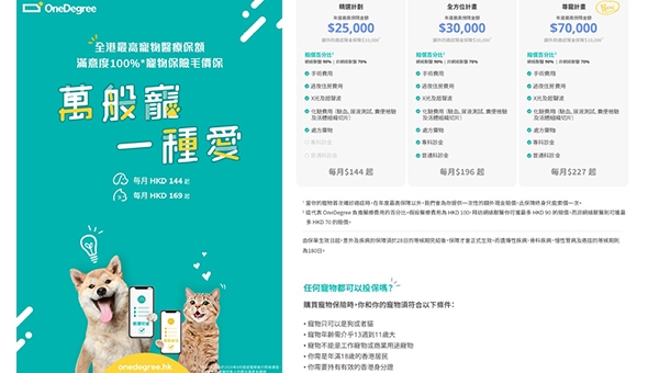 OneDegree集团表示:"OneDegree集团以香港为总部,我们主要有两类业务,除了从事一般保险服务之外,另一业务是从事自主研发的保险核心系统,主要是因应传统保险公司的保险流程,从制定保险产品内容、销售以至索偿等。现时传统保险公司很多程序都依赖人手操作,而我们特意组织团队,致力研发一个全新的保险核心系统,期望以科技促进香港以至亚太区内的保险生态系统更完整。"OneDegree集团说,OneDegree集团的附属公司OneDegree Hong Kong为香港保险业监管局2020年发出四个虚拟保险牌照的公司之一。谈到初创如何在有限的资源下在市场突围,集团认为,关键在于在庞大市场里,以正确的产品击中缺口,OneDegree Hong Kong于2020年4月在其全数字平台上,推出首款产品"毛价保"宠物保险,投保人只需花大约三分钟即可完成购买保险或提交索偿申请。这种"以快打慢"不但迅速引起市场回响,也令"毛价保"推出首9个月月均复合增长率超过五成。OneDegree集团坦言,了解客户所需是产品受欢迎的原因,"我们的共同创办人郭彦麟(Alvin)的母亲于2015年过身,她生前信奉佛教,有一段时间Alvin会到佛堂打斋,好几次遇上有主人为宠物打斋,他心想现时不少家庭都视宠物为成员之一,为什么家人会买保险,而宠物却不需要呢?故此他萌生发展宠物保险的想法。""香港大概有50万只猫狗宠物,但真正受到保险保障的只有2%至3%,正因为传统保险公司忽略了当中的商机,我们作为初创的保险公司,就利用科技对准缺口,致力以科技减低交易成本,客户不用给予佣金,已可以在市场中获得更好、更实惠的保险产品。"