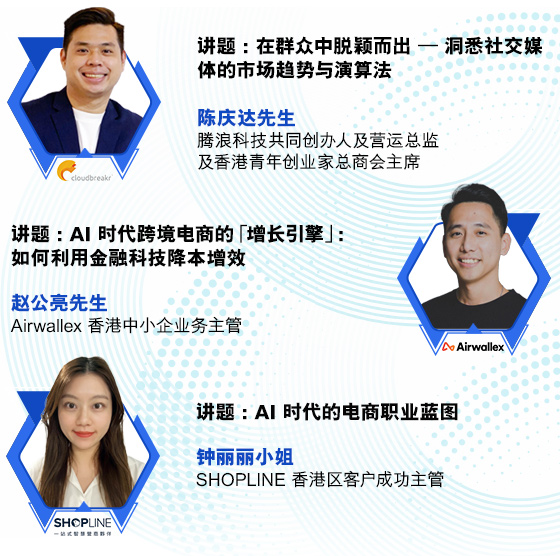 香港贸易发展局和职业训练局 (商品贸易及电商训练委员会) 邀请了行业专家剖析人工智能与电子商贸市场的最新趋势,并将分享行业洞见,说明中小企业如何透过整合人工智能工具优化社交媒体的行销计划丶简化财务管理,并探索电子商务领域中的职业前景,打造可持续的商业模式,增强竞争优势,出奇制胜。
