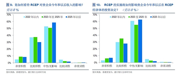 报告亦探讨《区域全面经济伙伴关系协定》(RCEP)实施后,如何影响大湾区企业的收入和投资计划,并发现受访者认为在政策实施初期,即2025年前较为有利。分别有 42%和32.9%的受访者认为,RCEP会对2022年营业收入和投资带来"非常或者比较积极"的影响(图9和图10)。2023至2025年,这两个数字分别提高到46.4%和41.4%,反映了随着时间而增加益处的看法。但是在2025年以后,部分积极回馈开始转向中性,因为早期行动者届时可能已收割了RCEP的许多收益。从行业分析,金融服务业最看好RCEP对今年营业收入的积极影响,其次是专业服务;创新和技术行业是2023至2025年的最积极回馈者;从提升投资角度出发,IT和制造业受访者在今年最为乐观,在后续两个时间段将依次被零售和批发业以及金融服务业所超越。