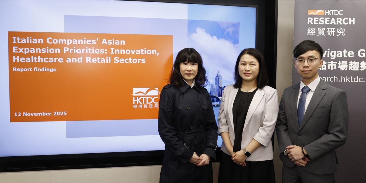 香港貿發局經貿研究總監范婉兒指出,調查結果顯示,多達77%的受訪意大利企業熱衷拓展亞洲業務,而中國內地及香港是其首選市場,「當這些公司擴展亞洲業務時,他們認為香港發揮重要的促進作用,此項發現實在令人鼓舞。被問及香港能如何便利意大利企業在未來三年擴展亞洲業務,約93% 的受訪者認為香港能提供有效支援,協助公司實現未來亞洲業務拓展計劃。香港是通往多個亞洲市場的戰略門戶,地位無可匹敵;與此同時,香港作為物流及供應鏈管理樞紐的實力也獲得廣泛認可。」