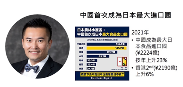 日本公益財團法人岐阜縣產業經濟振興中心經營支援部長渡邊佳宏表示,香港一直是岐阜縣企業備受關注的巿場,該中心自2013年起參與香港貿發局主辦的美食博覽,既協助兩地餐飲企業合作,也推廣岐阜縣的特色美食。他期望,通過此次網上研討會,讓日本企業對香港及大灣區食品市場有更深入的認識,「這次研討會分享了食品業在物流、發展方面等趨勢,我們期待全球疫情進一步回穩、國際回復自由通關往來後,能再次到香港推廣並舉行不同活動。」香港貿發局日本(大阪)辦事處代表馮政淼指出,不少香港人一向熱衷到日本旅遊,在疫情下對日本食品需求更見殷切。「香港人對日本食品的熱衷程度及購買力不可忽視,日本向香港出口的農林水產超過116億港元,佔香港同類食品進口額不到5%,反映日本企業未來可進一步向香港市場推廣更多日本優質食品。」他表示,由於愈來愈多內地民眾追求高品質生活,他們對各類進口食品的需求持續增加,而香港作為大灣區的門戶,其便捷的交通網絡有助日本企業接通擁有逾8,600萬人的大灣區巿場。「當日本農民在早上把採摘的食品送抵成田或關西機場後,當日下午已能在香港通關,黃昏時份已可送抵香港的零售店、餐廳等。因應大灣區民眾對日本新鮮食品的需求甚高,我們期望在不久將來可以通過香港,把日本食品即日送抵大灣區。」內地海關更新食品進口註冊制度