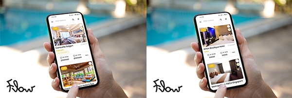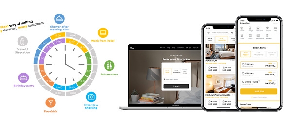 Flow聯合創辦人兼營運總監黎志德曾任職會計師樓,經常到海外公幹,留意到不少商務旅客即日來回,不會租住酒店,但沒有「落腳」的地方很不方便。「最初我們希望有一個平台可滿足商務客對短租高質酒店房間的需求,讓他們有個舒適的地方休息梳洗和會見客人,但又不需要付一整天的酒店房租。」他和團隊於2018年推出Flow平台,每小時根據酒店最新使用率等數據,更新頁面有關日間可租用酒店房間及時段的資料,並以演算法(Algorithm)計出最具競爭力的房間價格,有效提升酒店入住率達30%。針對「開OT、冇車返屋企」而需要「借宿一宵」的上班族,平台亦提供「遲check in、早check out」的夜租服務。首創以加密貨幣付款
